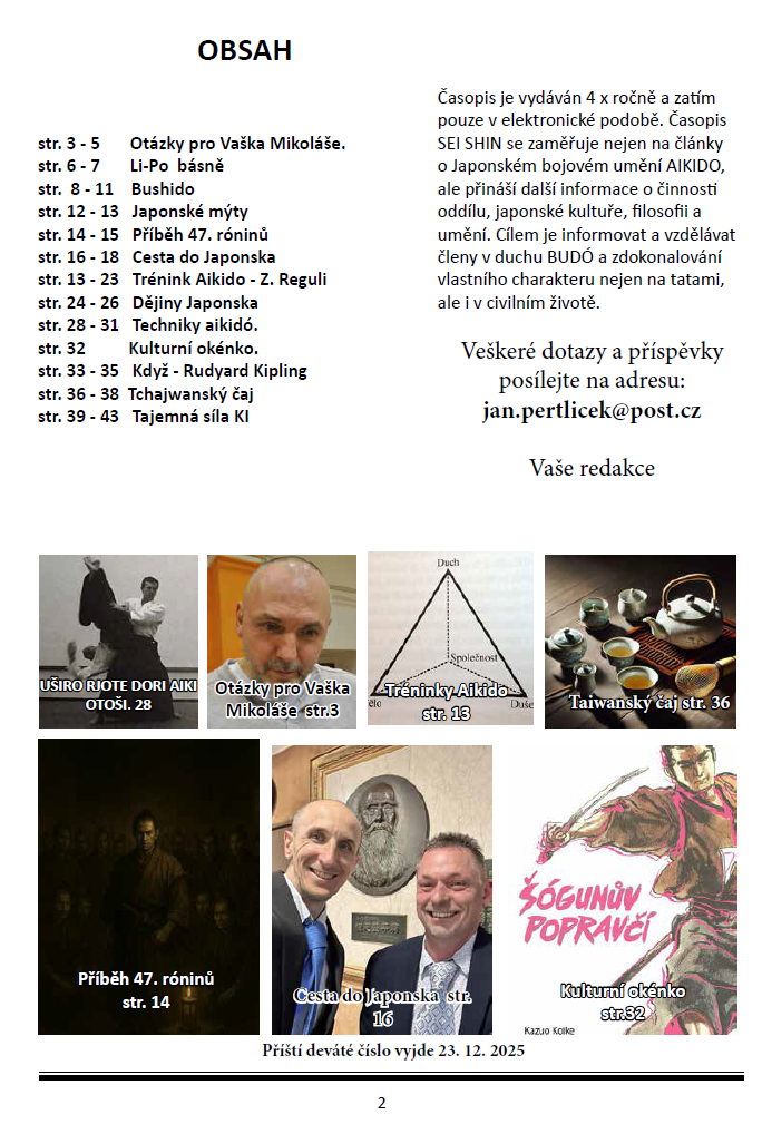 Děkujeme moc za zpětnou vazbu. Ve vydání je již další číslo :-). Aikidu zdar